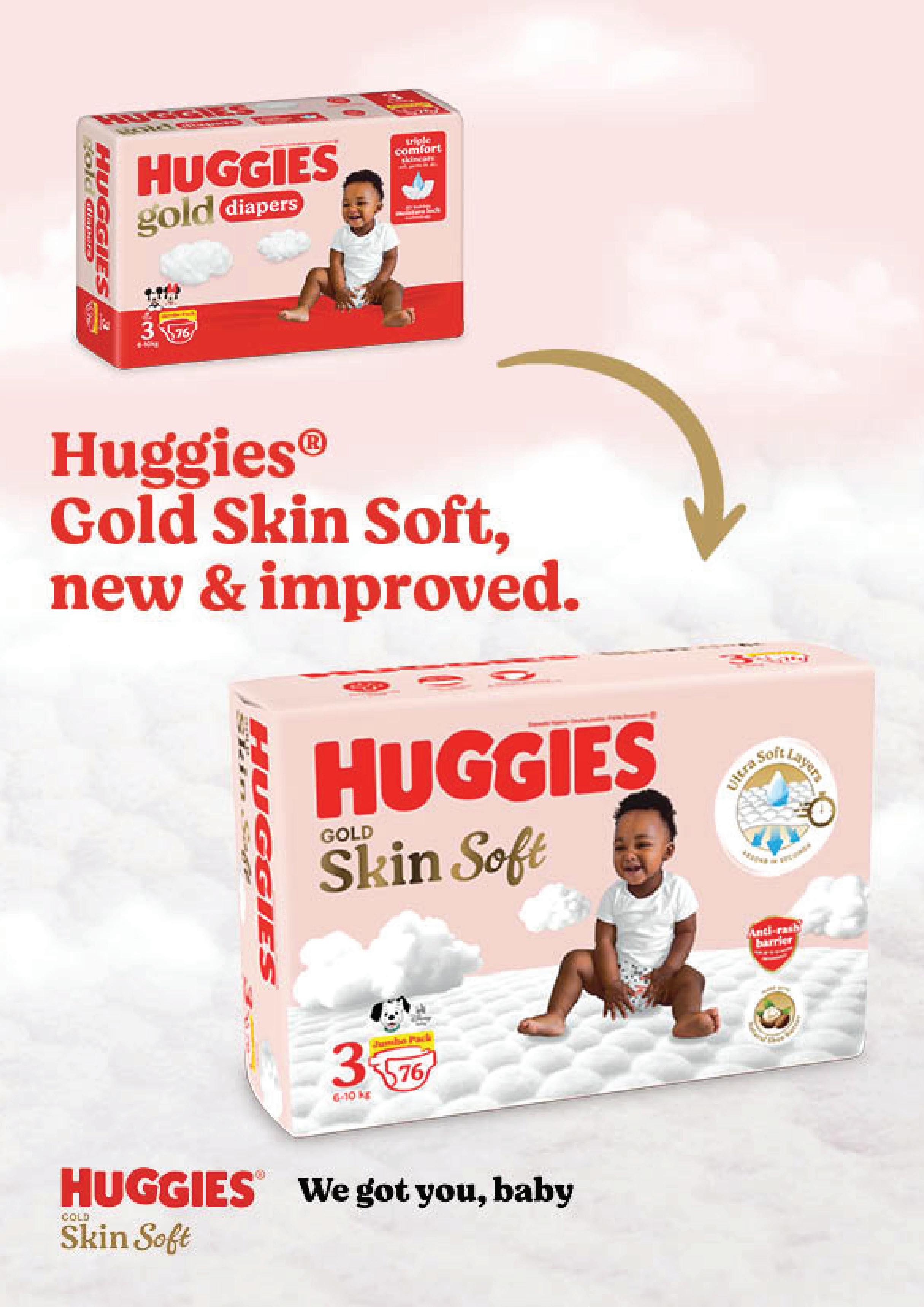 Parents can find the new Huggies Gold Skin Soft nappies in leading retailers nationwide and online. Visit www.huggies.co.za for more information.