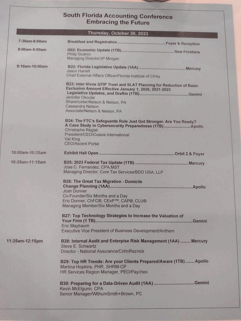 Cindy Ragan is a Professor of Economics at Broward College and the leading expert in the genre of CPA mergers Her speech: “Recent Valuation Trends of CPA Firms“ Received a 4.9 performance review based on feedback from the FICPA.