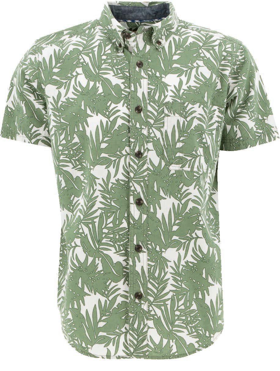 Like peering up towards a shimmering canopy of Hawaiian trees, this shortsleeve shirt will transport you to a relaxed state of mind. This shirt is made in the USA from 100% cotton, and the effect of craftsmanship shows itself in the smooth, lightweight nature of the top. Enjoy handsome features, such as a full button front, relaxed fit, and collar.