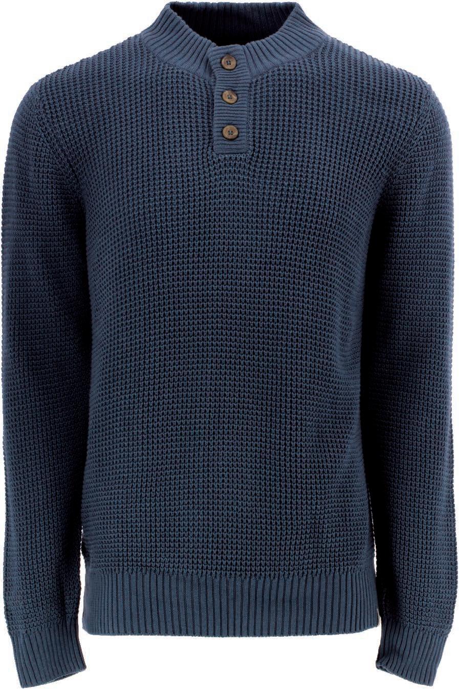 Casual, yet handsome, one of the most comfortable sweaters you’ll enjoy this winter. Providing the ultimate balance between breathability, weight, and warmth, you may find that the Pinecrest Sweater is one of the most versatile pieces in your wardrobe. Simple styling allows the textured knit a visual prominence. Features a 3-button henley and a ribknit stand collar, cuffs and sweep. Available in Dress Blues and Major Brown. » 60 organic cotton / 40 viscose rayon » Designed in the USA