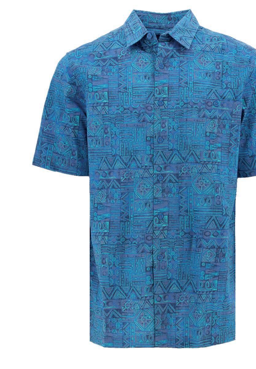 Set into a Marine Blue background, like the waters you dream about each day, this design celebrates classic Hawaiian Tapa cloth, a Pacific Islands practice that dates over 2,000 years. Crafted with Tradewind Technology™, this top is moisture-wicking, anti-microbial, quick-drying, resistant to wrinkles, and features enhanced stretch and UPF sun protection. The style is simple, featuring a heathered appearance, a 3-button placket, and a straight hem.