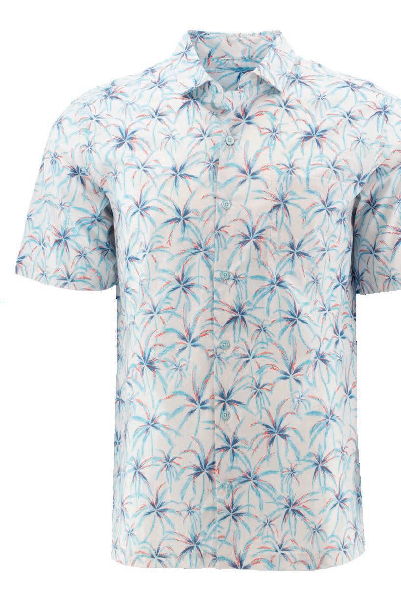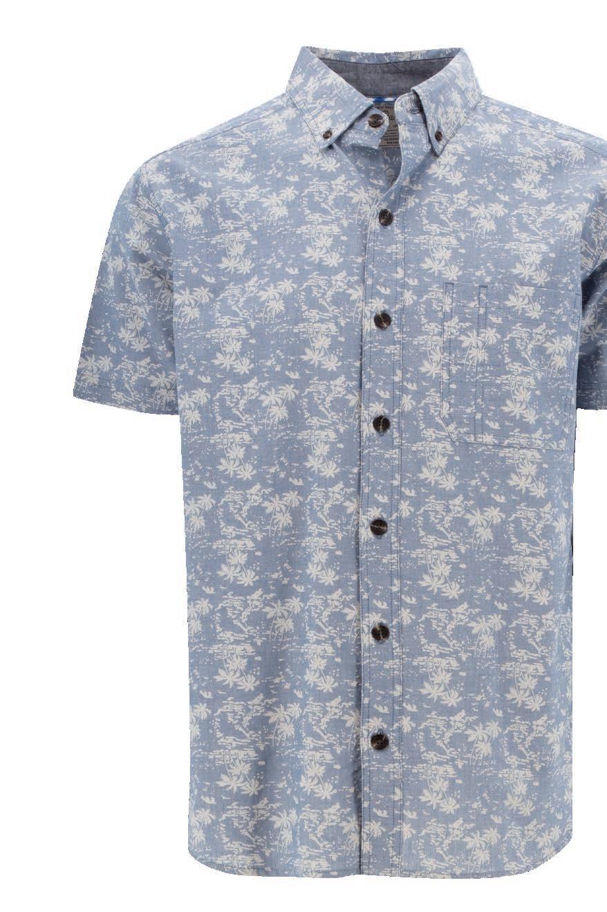 The palm tree is a universal symbol of relaxation and beach vacations. The fun, classic island style is sure to bring smiles to days spent along the water. Besides the great design, including patternmatched chest pockets, an open spread collar, and straight hem, the cotton fabric will have you reaching for this shirt time and time again.