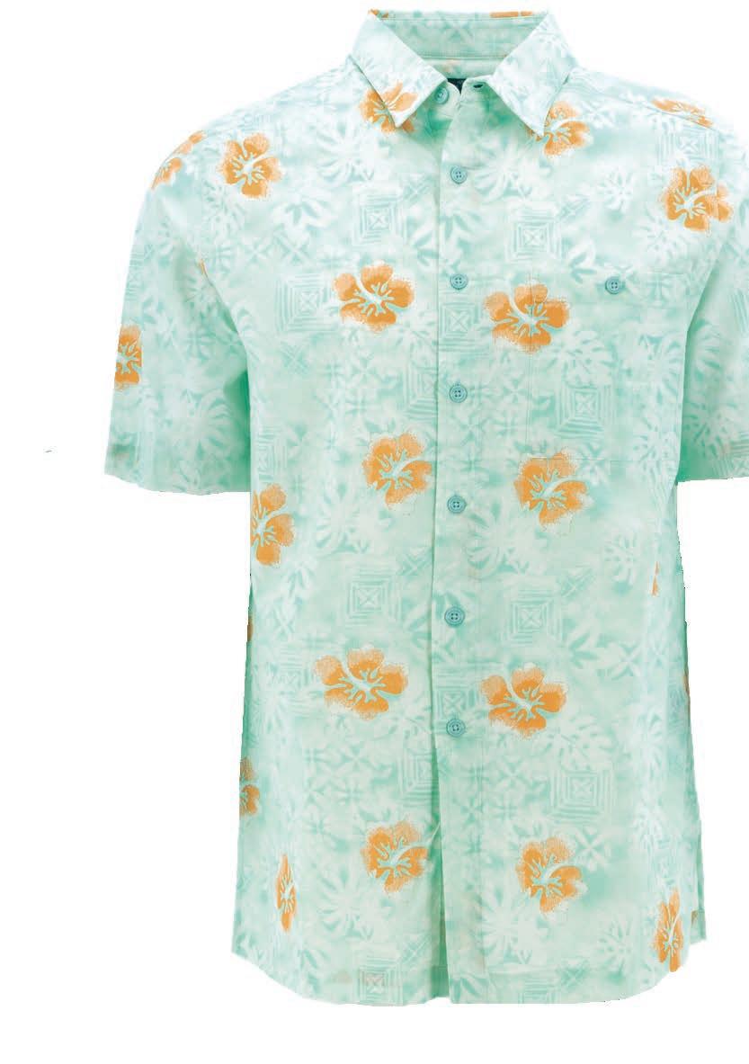 Comfort, style, and a laid-back personality: this shirt is a summer favorite. For the beach or for a casual luau, this shirt delivers the benefits of natural cotton and viscose. You’ll enjoy unparalleled breathability, a soft handfeel, and an easygoing fit. A modern, head-turning print of hibiscus flowers and geometric symbols gives this shirt that island glow.