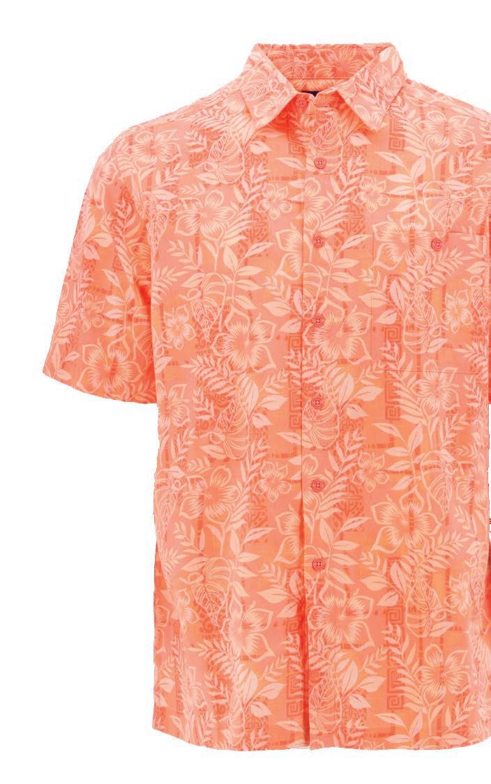 Comfort, style, and a laid-back personality: this shirt is a summer favorite. For the beach or for a casual luau, this shirt delivers the benefits of natural cotton and viscose. You’ll enjoy unparalleled breathability, a soft handfeel, and an easygoing fit. A modern, head-turning print of hibiscus flowers and geometric symbols gives this shirt that island glow.