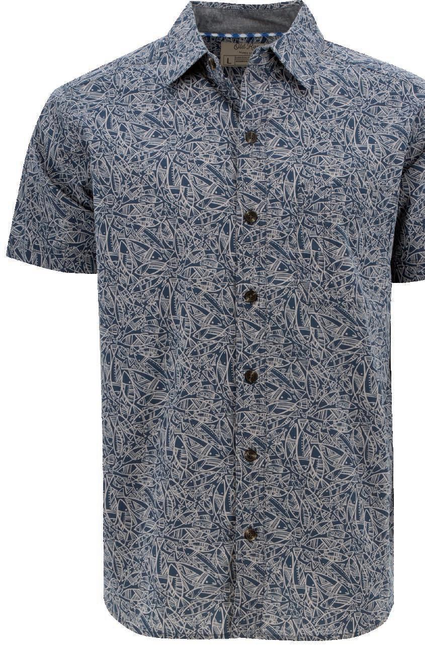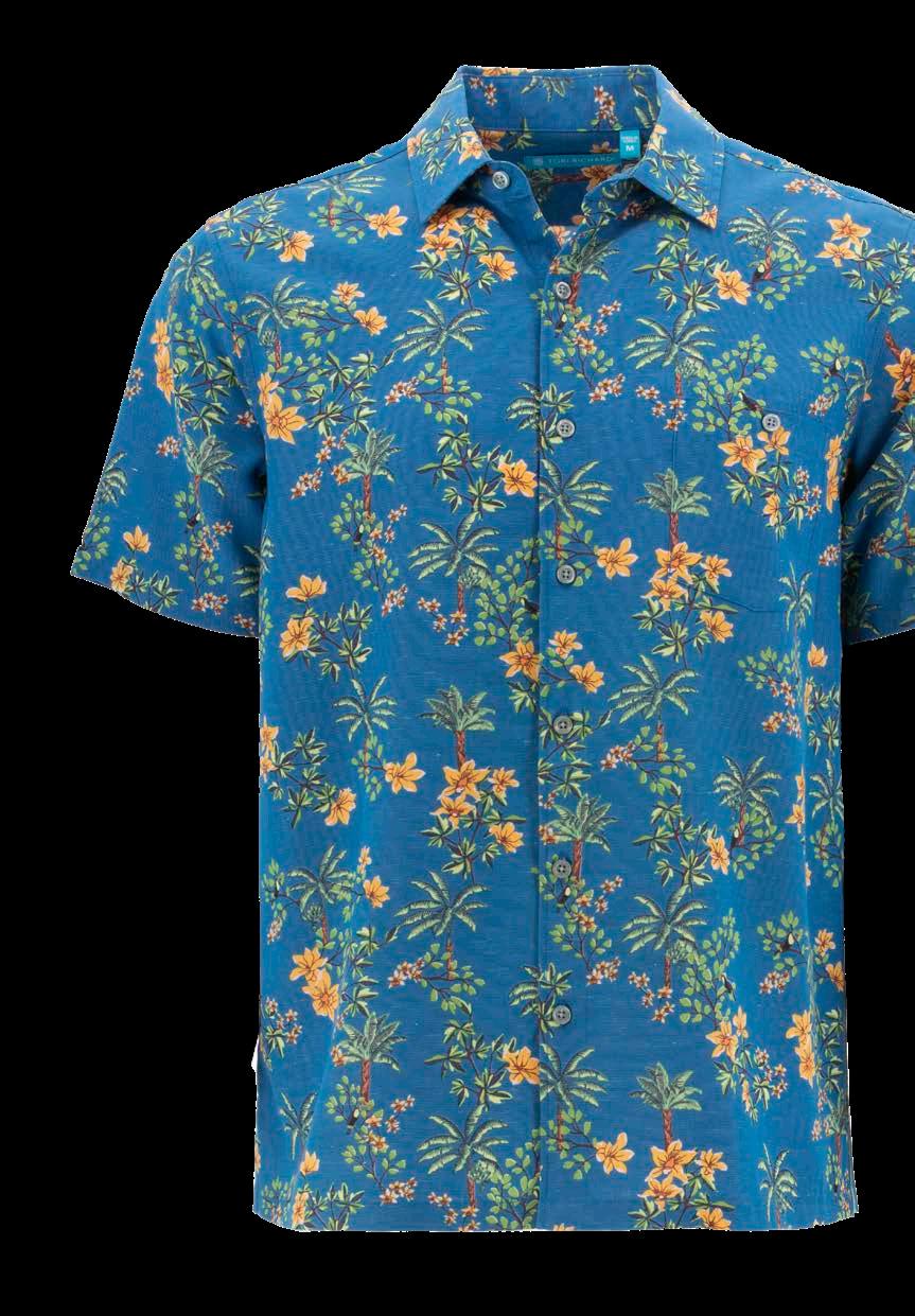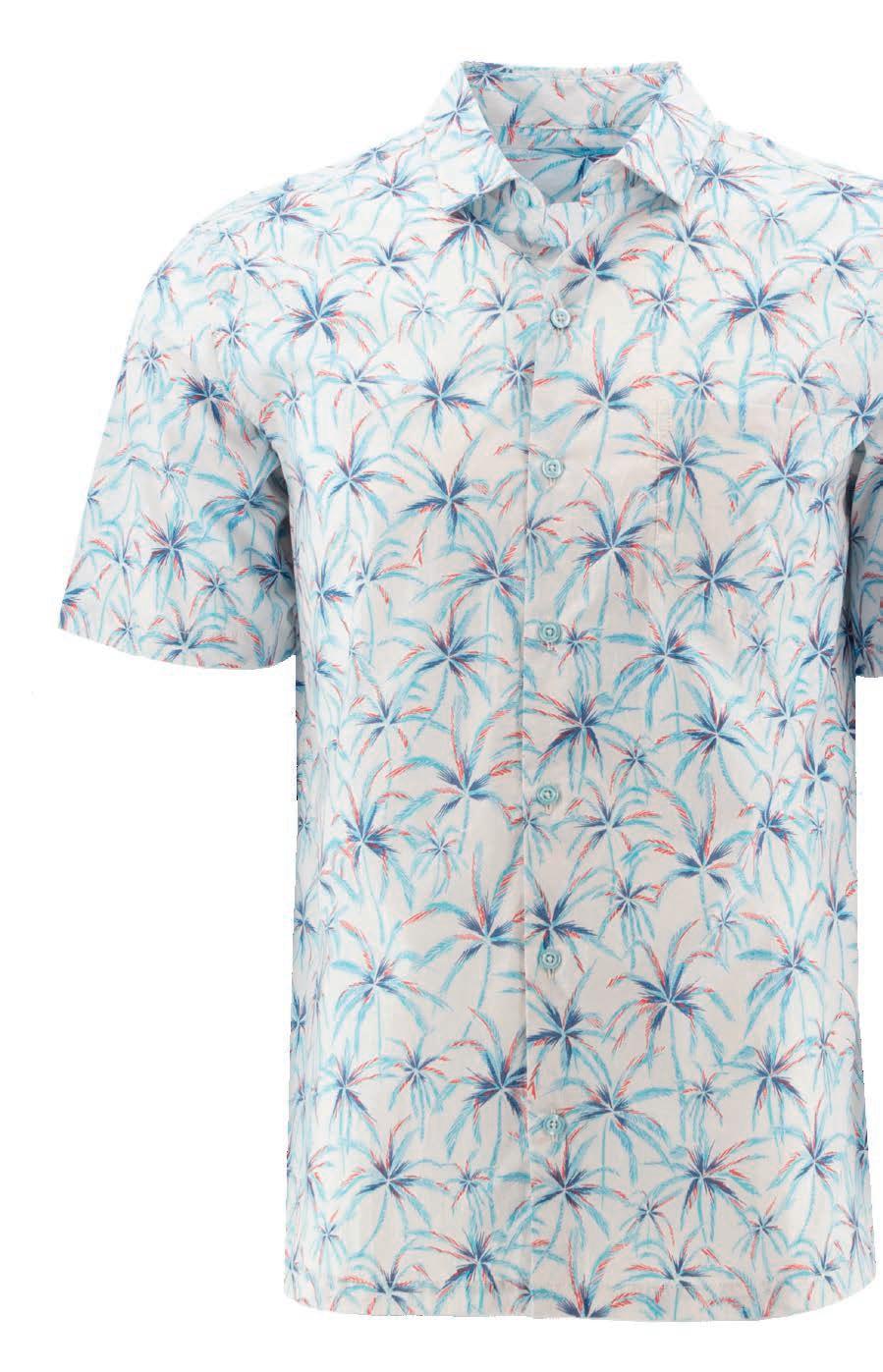The palm tree is a universal symbol of relaxation and beach vacations. The fun, classic island style is sure to bring smiles to days spent along the water. Besides the great design, including patternmatched chest pockets, an open spread collar, and straight hem, the cotton fabric will have you reaching for this shirt time and time again.