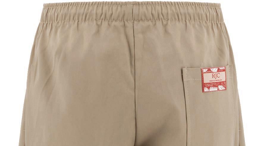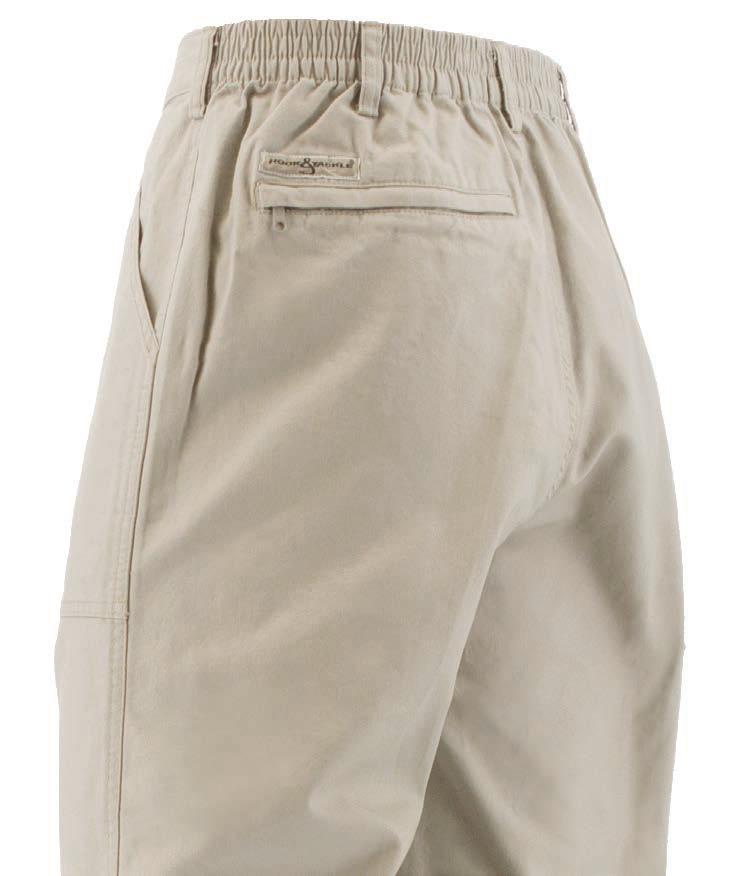 The same 100% rugged cotton Camp Cloth as the Island Shorts by Hook & Tackle but in 33” finished inseam pants. Features comfort back elastic waistband, and pockets galore: deep front pockets, beverage can/phone pocket, hidden security pocket and secure zip back pocket.