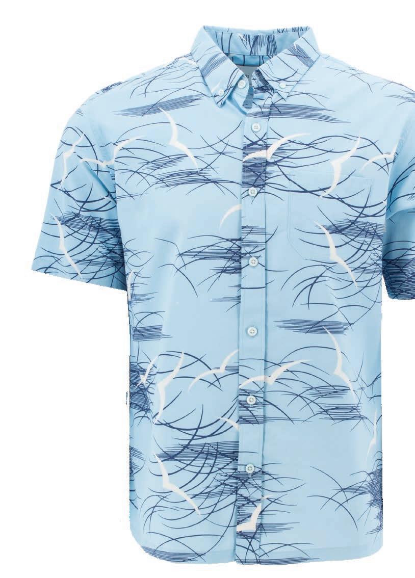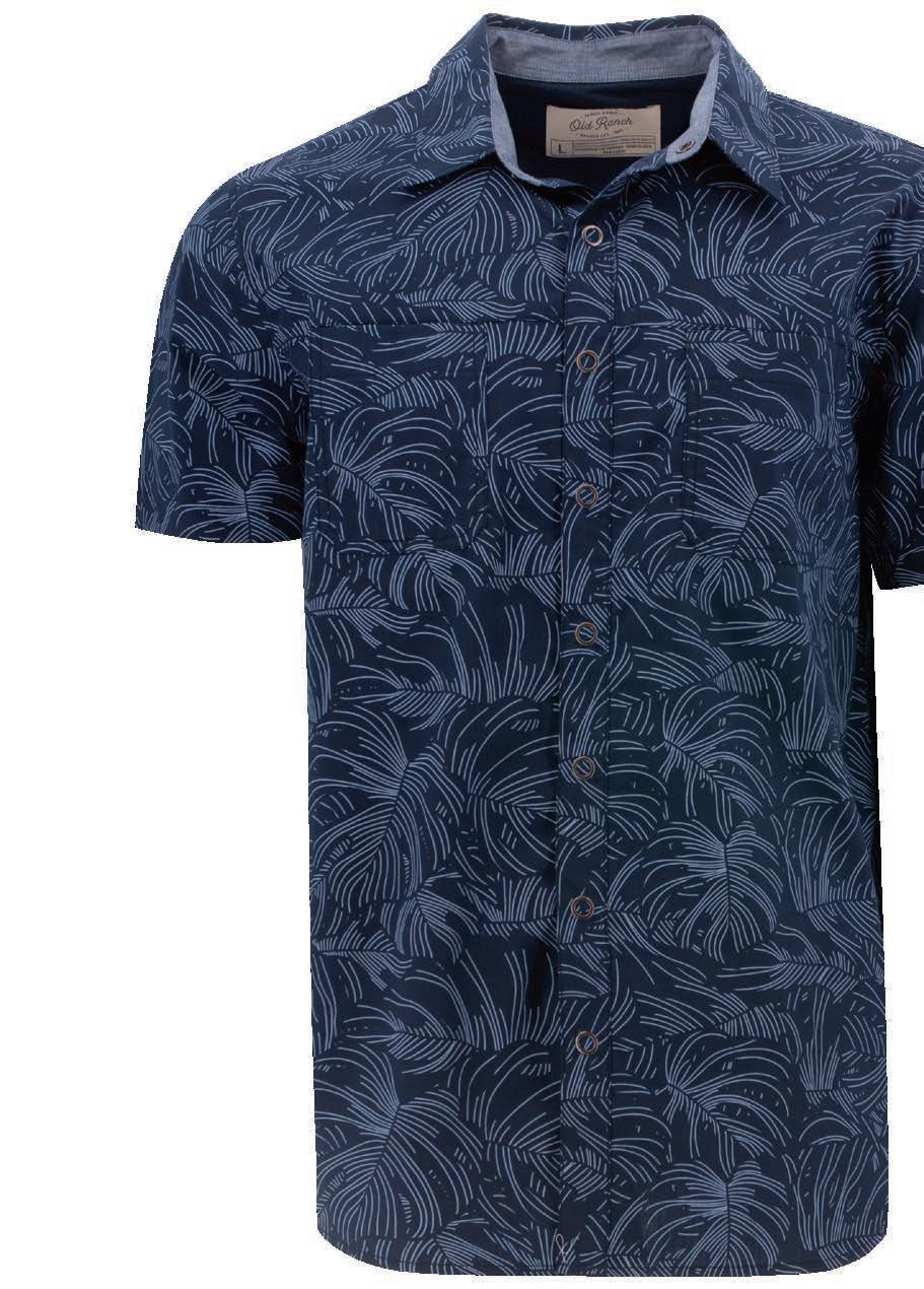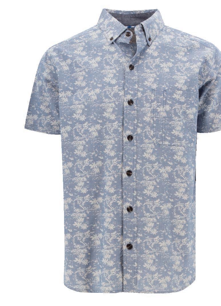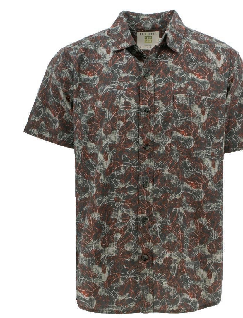 One of the best features of the Fair Trade Certified™ Oasis Capeback Shirt is the vent hidden into the back yoke with breathable mesh inside. This makes this shirt perfect for long days when you still want to look your best. The fabric, made from 60% organic cotton, also helps make this shirt comfort able during the warmest days. Breathable, lightweight, and easy-going. The classic details throughout shine, including the but ton-snap front, spread collar, and architec tural seam along the front and back. The subtle palm print gives interest without shouting: “This is my first time visiting Hawaii.”