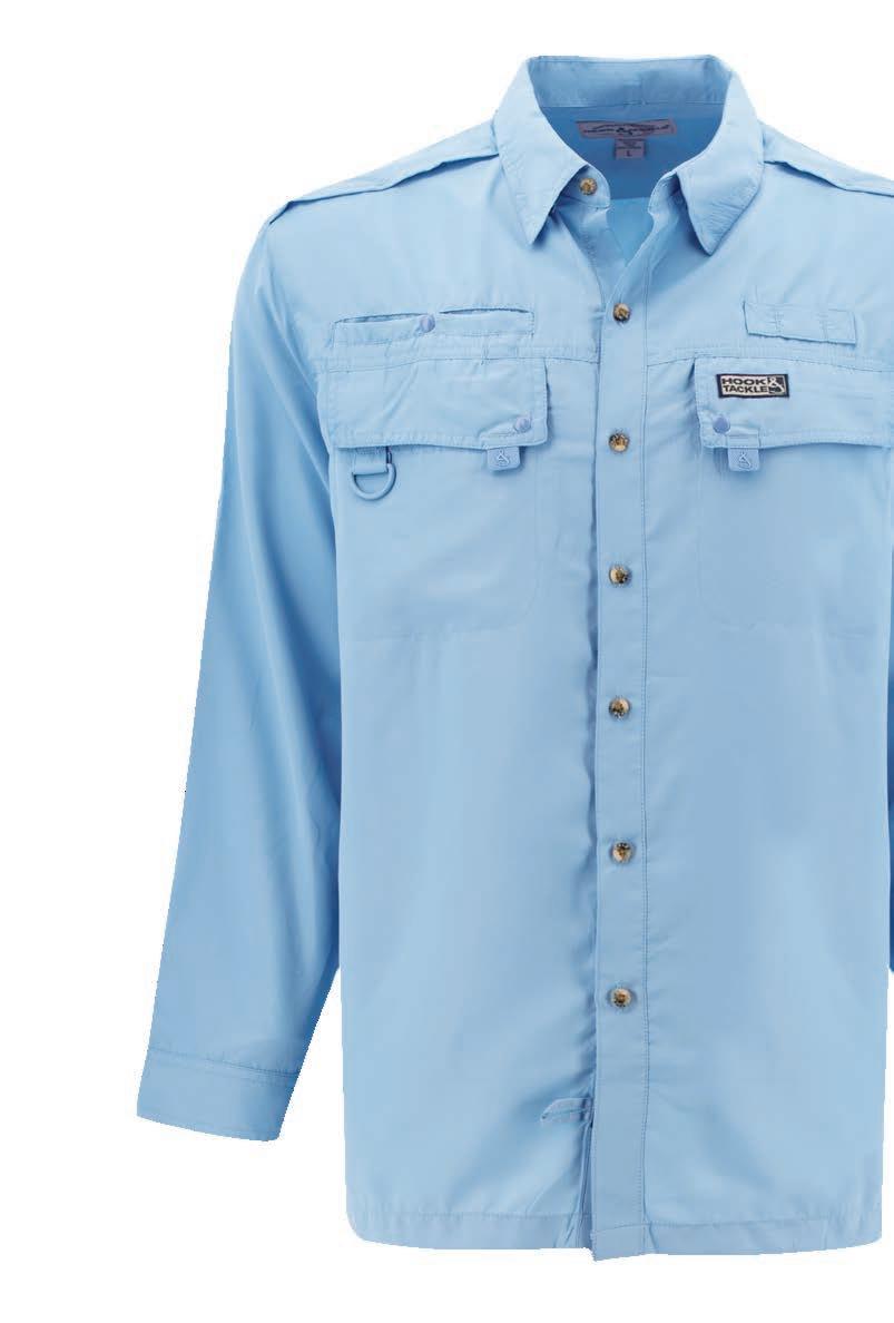 Long sleeve UPF 50+ sun protection, vented back with moisture wicking mesh lining and roll-up sleeves with tabs make this one of the coolest shirts around. Other features are a hidden button-down collar, secured snap and zippered pockets, and a fly rod/utility loop.