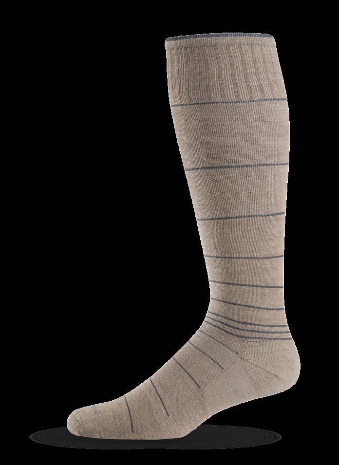 Choose from two different levels of moderate compression with these socks that help improve circulation when you need or want extra support during your day at every age. Recommended for several reasons; prolonged sitting or standing, flying and travel, exercise and recovery, minor to moderate swelling, and varicose veins. Features spandex throughout the sock, graduated compression leg, turn welt top, arch support, ultra light cushion sole and seamless toe closure.