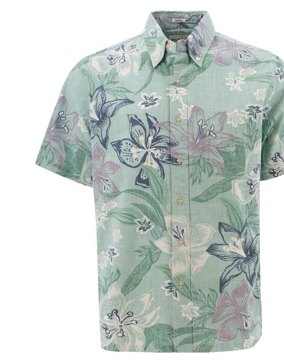 The Pen & Ink Botanical aloha shirt blends plumeria, hibiscus, fern and banana leaves in a watercolor-brush stroke. Featuring a full placket complemented with coconut buttons, patternmatched chest pocket and straight hem. This shirt is fit for those who appreciate a bit of artistic flair. Take the detailed, illustrated print from the office to your next outing!.