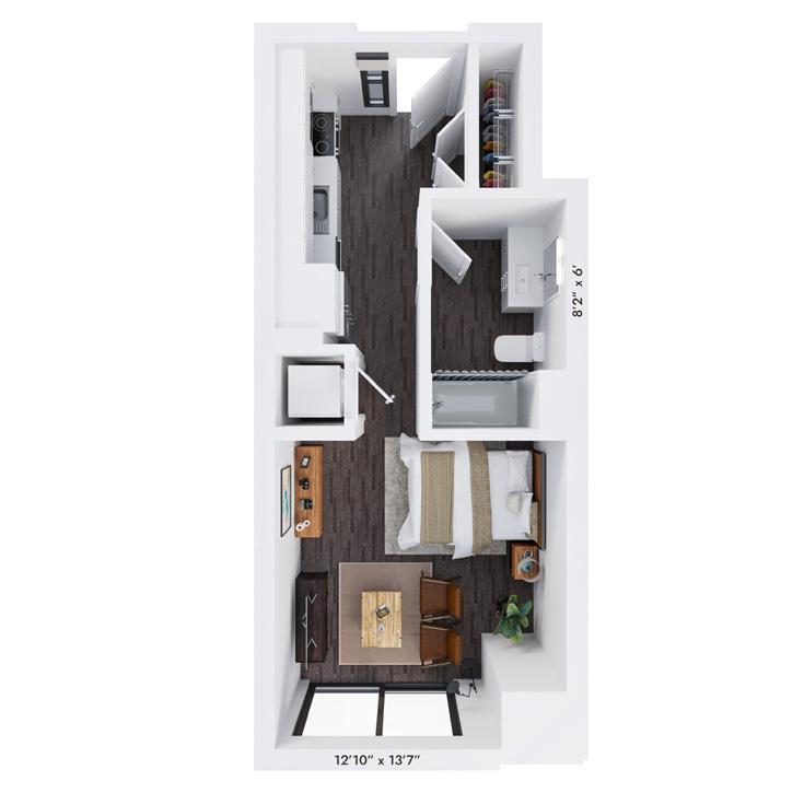 Looking out over the glimmering lights of Kansas City from your private balcony, you’ll get why we picked this spot. Alton Heights brings together the perfect mix of head-in-the-clouds luxury and feet-on-the-ground practicality. Our residents love gathering for sunset drinks on the sky deck just as much as they appreciate getting some quiet work in inside our podcast lab and workspaces. And yes, we did put a pool on the roof; your morning laps come with a view of the city skyline.