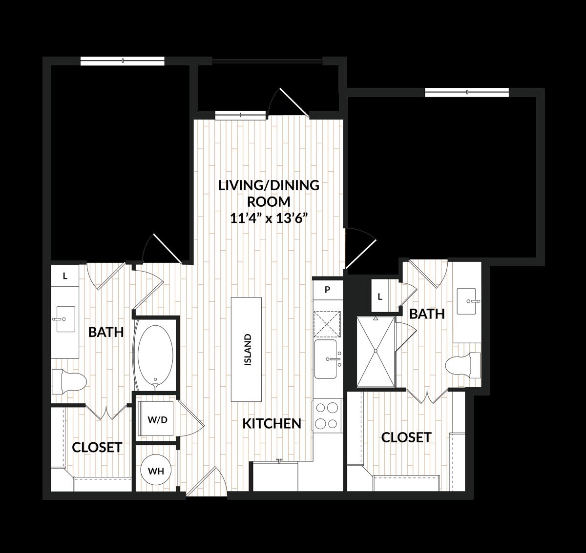 2 BEDROOM | 2 BATHROOM | 1,222 SQ. FT.