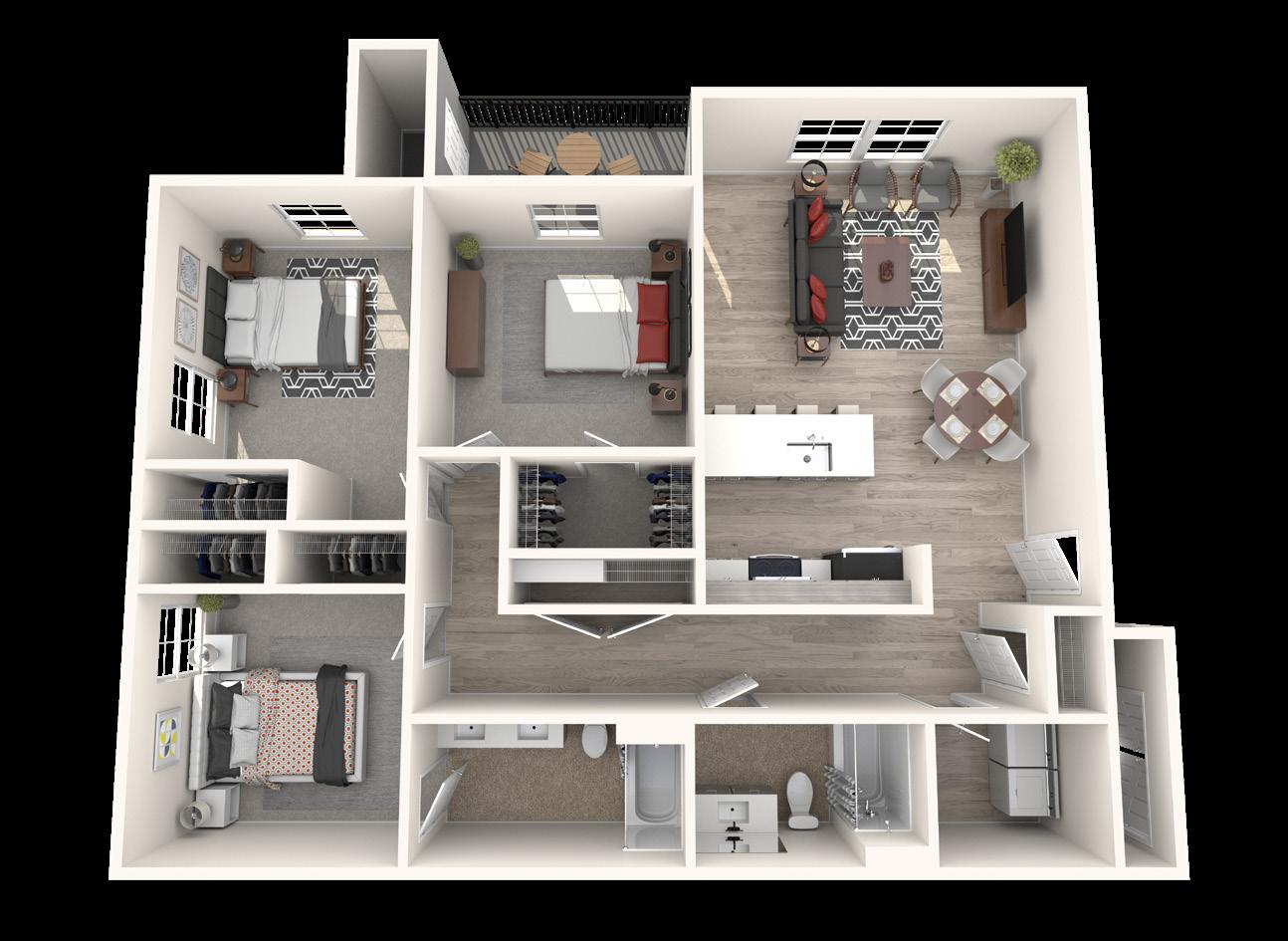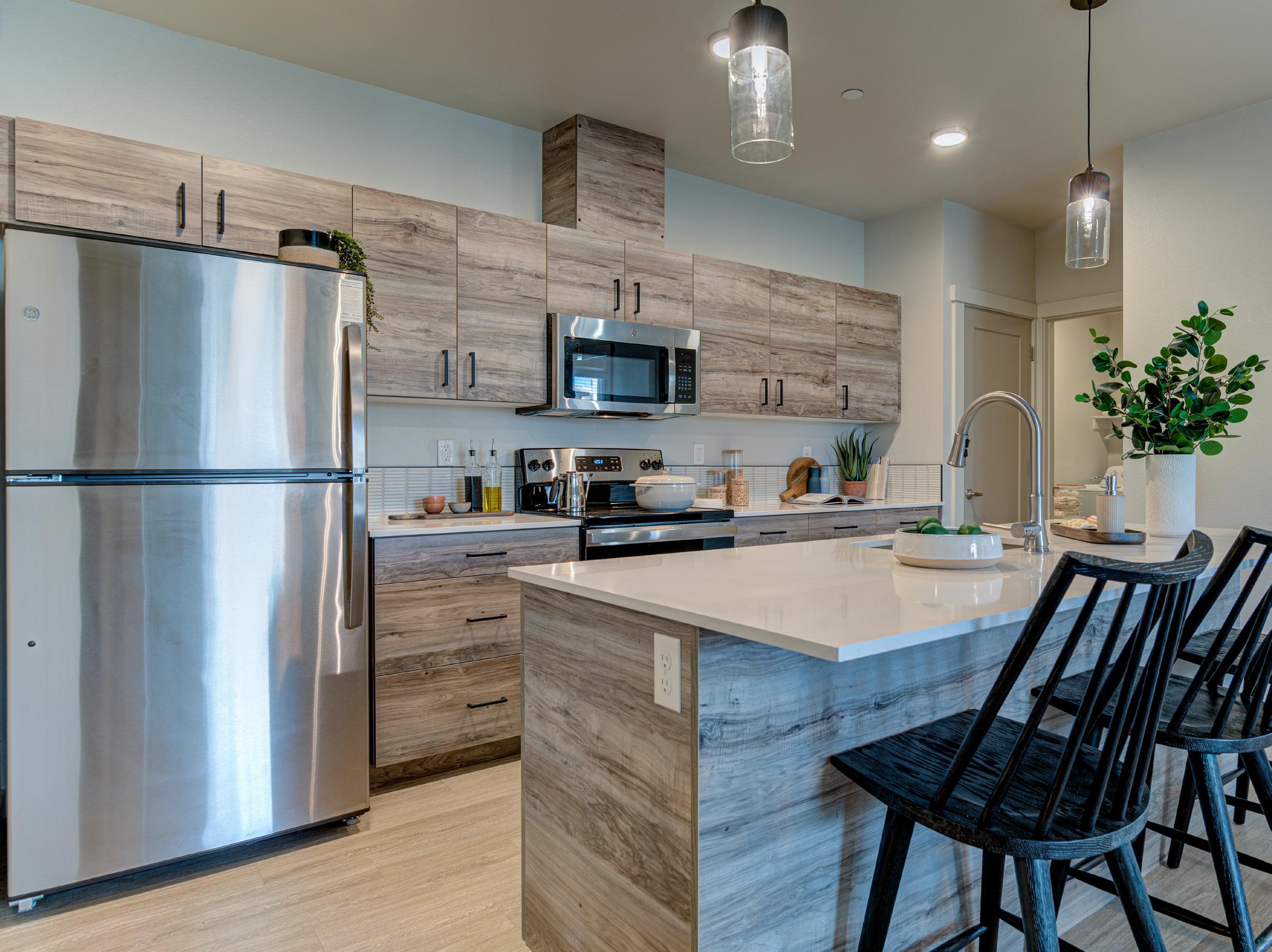 RedPoint Apartments and Townhomes are equipped with comfort-centric features, superior design details, and smart-home technology. Bring out your inner chef and prepare fabulous dinners in your modern kitchen, boasting stainless-steel appliances, quartz countertops, and a tile backsplash. Step out onto your personal deck and enjoy a cup of coffee or a glass of wine. Walk-in closets and dedicated storage space ensures there’s plenty of room for all of your hiking and climbing gear.