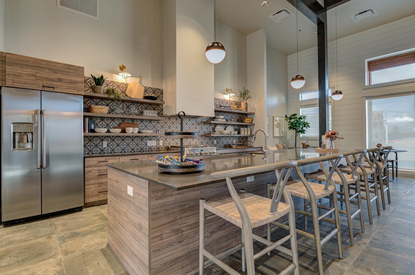 - Open Kitchen with Tile Backsplash and Quartz Countertops