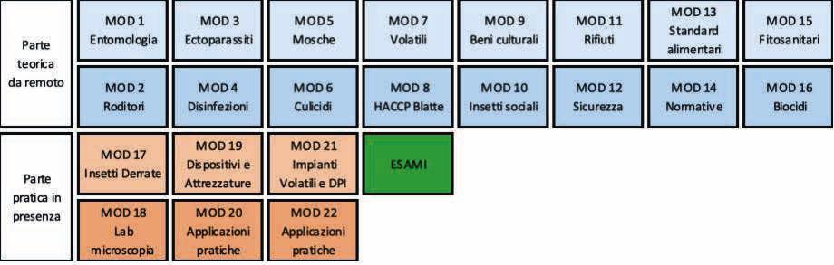 1. corso completo di 88 ore composto da lezioni condotte online (totale 64 ore divise in 16 moduli) e parte pratica in presenza (totale 24 ore