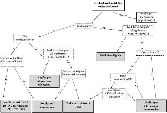 Quando la misura notificata a norma degli articoli 11 o 12 è intesa a limitare la commercializzazione o l’uso di una sostanza chimica o di un preparato chimico, gli Stati membri forniscono quanto prima possibile una sintesi o i riferimenti dei pertinenti dati della sostanza o del preparato in questione e dei sostituti conosciuti, qualora tale informazione sia disponibile, comunicando inoltre gli effetti previsti del provvedimento sulla salute e la sicurezza dei consumatori, nonché la valutazione del rischio effettuata in conformità dei principi generali di valutazione dei rischi delle sostanze chimiche ai sensi del Regolamento (CE) n. 1907/2006 - REACH e del Regolamento (CE) N. 1272/2008 - CLP. L’attuazione della Decisione (UE) 2019/417 (Fig. 1) stabilisce le linee guida per la gestione del sistema d’informazione rapida dell’Unione europea (RAPEX) sulla sicurezza dei prodotti e del suo sistema di notifica, definito dalla direttiva 2001/95/UE.
