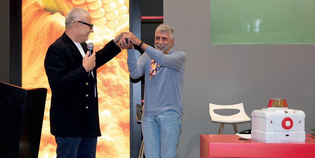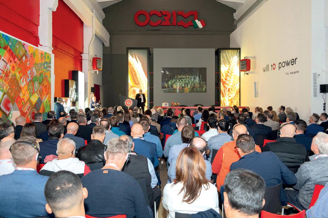 Antolini per la consegna del premio “OPprize” - riconoscimento con le sembianze di Pinocchio, giunto alla seconda edizione - ad alcuni dipendenti che hanno festeggiato importanti traguardi di appartenenza, non già di sola presenza, in Ocrim e in Paglierani. Nel proseguo della premiazione è quindi subentrato l’AD Alberto Antolini che, riconoscendo la paternità del premio al fratello Sergio, lo ha premiato per la sua lunga e intensa carriera. Dipoi ha voluto ripercorrere le tappe delle passate edizioni di “Grano, farina e…”, proiettando un filmato - sulle note di “Musica, musica” di Ornella Vanoni - composto da una serie di scene tratte da video di Ocrim di questi ultimi quindici anni a rappresentare la grande evoluzione dell’azienda sia a livello industriale sia umano. Il filmato, come una metafora visiva di una crescita inarrestabile, ha testimoniato l’impegno e la dedizione con cui la famiglia Antolini ha condotto Ocrim verso traguardi sempre più ambiziosi, avvicinandola al prestigioso traguardo degli ottant’anni con una consapevolezza e un entusiasmo che lasciano presagire un futuro ancora più brillante. La loro guida ha trasformato l’azienda in un faro di innovazione e successo, rafforzando ulteriormente il suo ruolo di protagonista a livello mondiale nel settore.