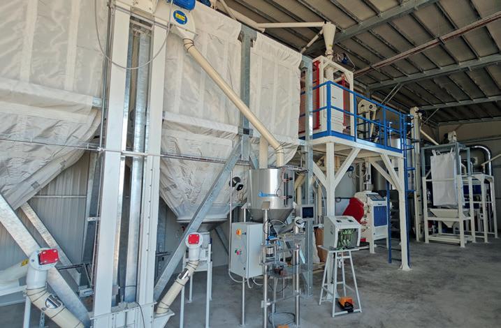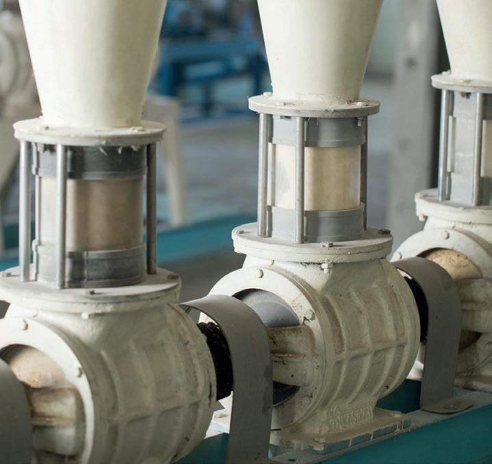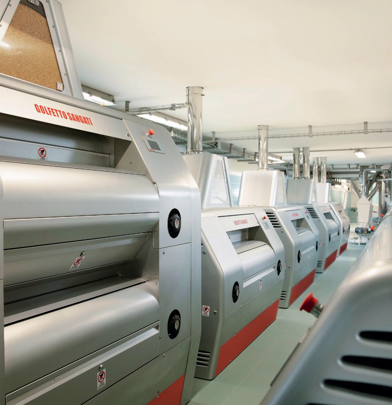 • un reparto pulitura affidato al Pulitore combinato, ovvero una soluzione compatta composta da Superpuligran (per la separazione degli scarti fini e grossi), Svecciatoio (per la selezione dei semi) e Strofinatrice con tarara (che stacca il germe, le barbe e il pericarpio dall’endosperma, riducendo carica batterica e ceneri). Lo Spietratore completa la pulitura insieme a un impianto di aspirazione polveri (scartando sassolini e frammenti vari);