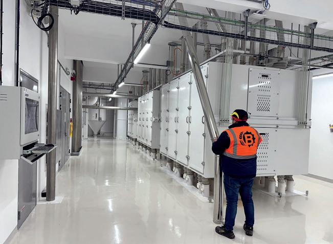 rigidi delle pareti prismatiche delle celle. Il beneficio è su due fronti: si ottiene un’elevata compattazione dei volumi in gioco e un risparmio di materia prima strutturale. Il notevole lavoro di disegno che ha caratterizzato la commessa ha consentito anche di rendere pienamente compatibile il pannello di parete liscio con quello grecato ed è da ora in avanti possibile per Technobins realizzare batterie costituite da un mix del tutto personalizzabile di queste due soluzioni tecniche. La pannellatura di rivestimento esterno (tamponamento/copertura del blocco) si innesta direttamente sulle pareti delle celle, senza necessità dunque di fornire un’ulteriore struttura che funga da “involucro” dell’impiantistica. Questo si traduce, oltre che in un risparmio economico, anche nell’eliminazione di quelle intercapedini vuote all’interno delle quali non si riesce ad accedere per effettuare le ordinarie operazioni di pulizia. L’importante investimento è stato pianificato da una proprietà lungimirante, che ha saputo cogliere le opportunità date da Industria 4.0 e che si è avvalsa di uno studio tecnico di consulenza che ha lunga esperienza nel settore molitorio, Erregi Engineering.