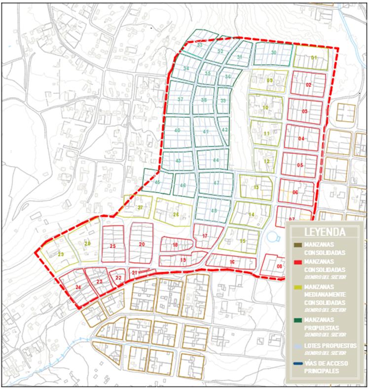 a.DentrodelapropuestadeManzaneoy Lotización, lo que se ha tratado de generar es una adecuada división territorial en base a normativas que la reglamenten, permitiendo que los inmuebles lleguen a ser aptos para poder ser habitados, y teniendo adquisición a todos los servicios básicos que consideren al lote para una mejor calidaddevida.