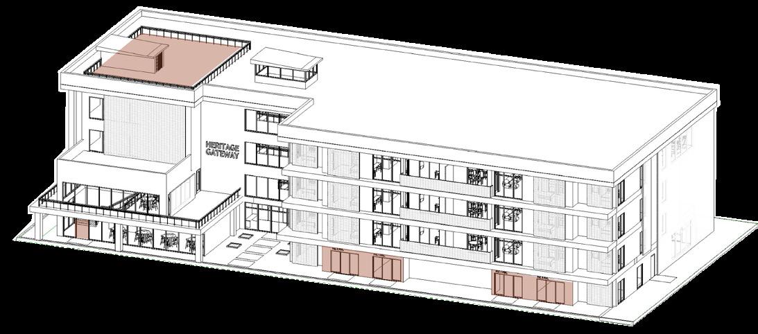 The Heritage Gateway is a multiuse residential building that honors the historic character of downtown Lawrence while embracing modern sustainability and community-focused design. Bricks from the Lawrence Journal-World building (currently on the site) are re-purposed to reflect the site’s history, while a layered facade combines ceramic tile cladding with opperable brick screens, allowing residents to customize shading and privacy. Ground-floor retail spaces, a café, and a gym activate the building, while green roofs and garden spaces enhance urban biodiversity and offer places for relaxation.