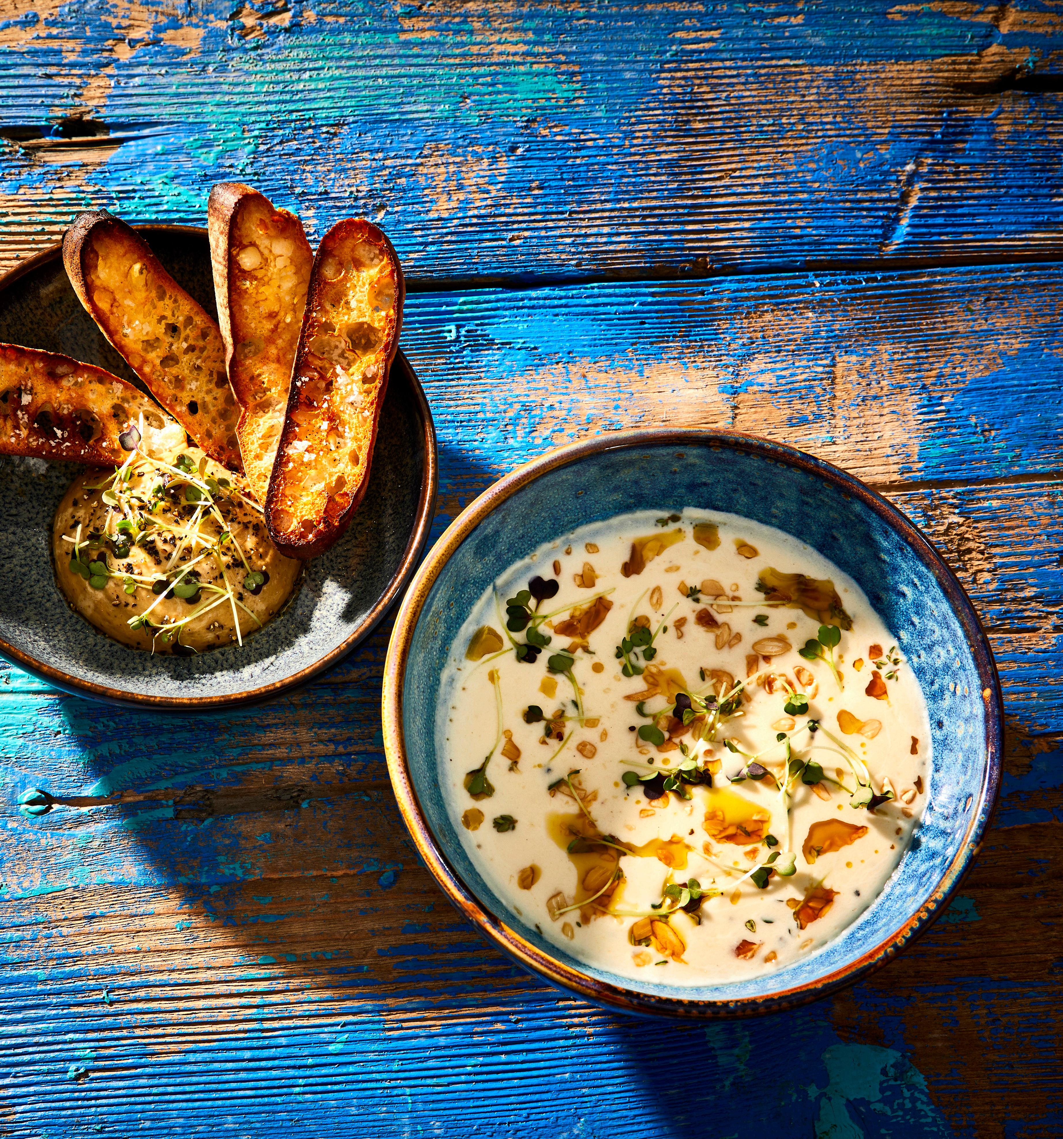 Distinctive and indulgent that’s what this dish is all about. We serve a luxurious combination of fresh sea bass, chorizo, cauliflower two ways and an amazing salsa verde with a hint of mustard. Squeeze the grilled lemon well over the dish and prepare your guests for a pureindulgence!double-hearted