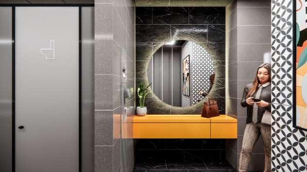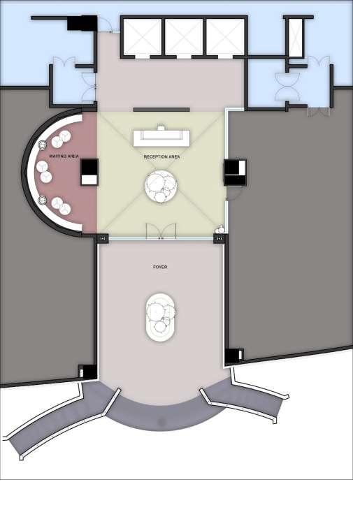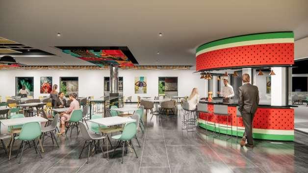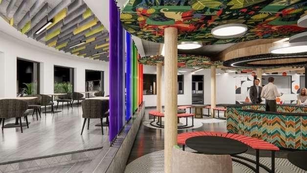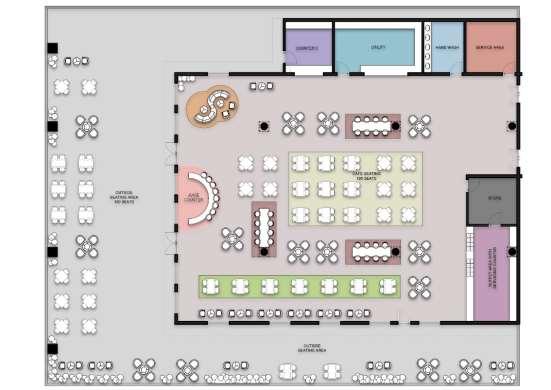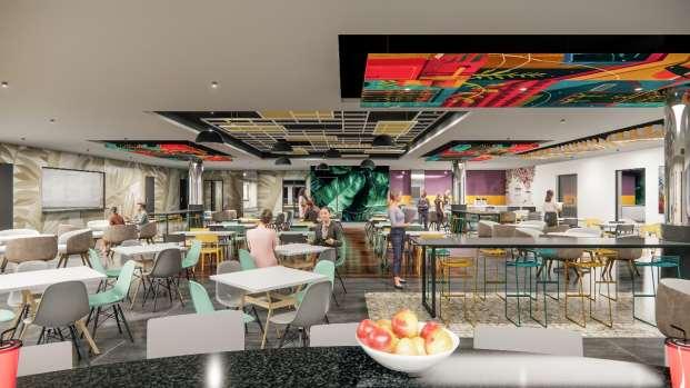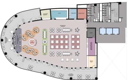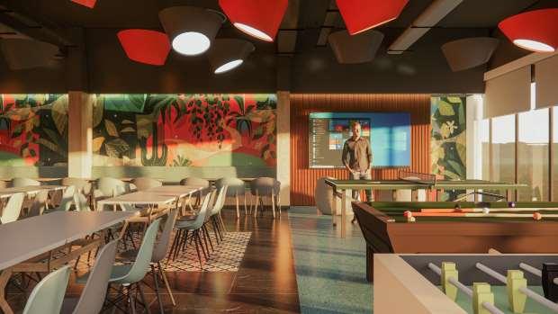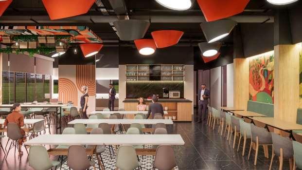 The overall design idea is to make the cafeteria a vibrant space, which is more like a breakout area and a space to relax This approach will add value to the overall office atmosphere adjacent to it