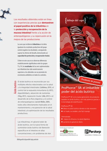 Los resultados obtenidos están en línea con experiencias previas que demuestran el papel positivo de la tributirina en la protección y recuperación de la mucosa intestinal frente a la acción de enteropatógenos y su repercusión en la mejora de las producciones Las aves que recibieron tributirina en la dieta igualaron los resultados productivos del grupo control negativo (no desafiado), consiguiendo superar los efectos del desafío, demostrando así capacidad de protección y recuperación tisular.