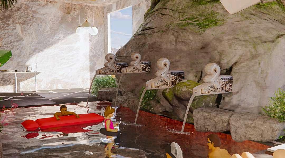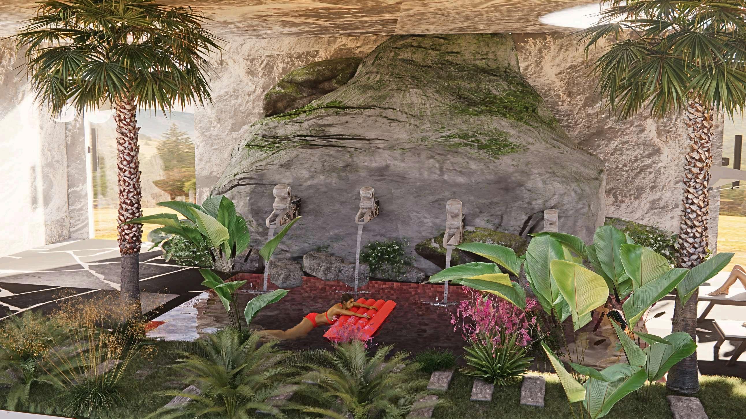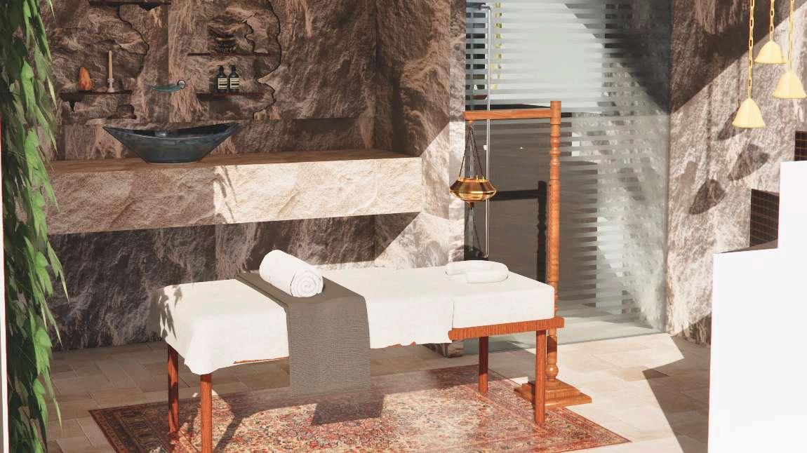 created for a competition-based school project to design a luxury spa. Chosen among multiple students, each offering a unique aesthetic