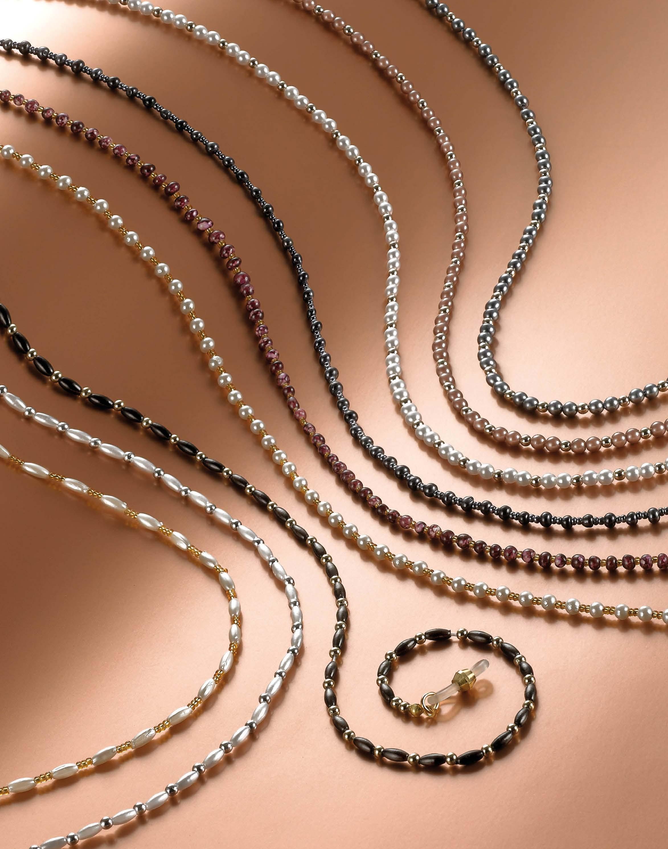 All chain sets featured in from the Chades collection offer a unique spin on the traditional spectacle cord design, incoporating materials such as glass and wood, as well as utilising a diverse range of colours and patterns.