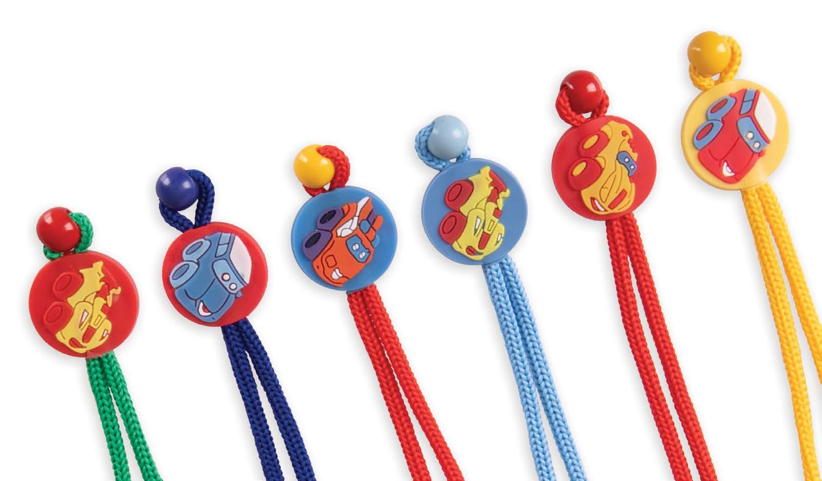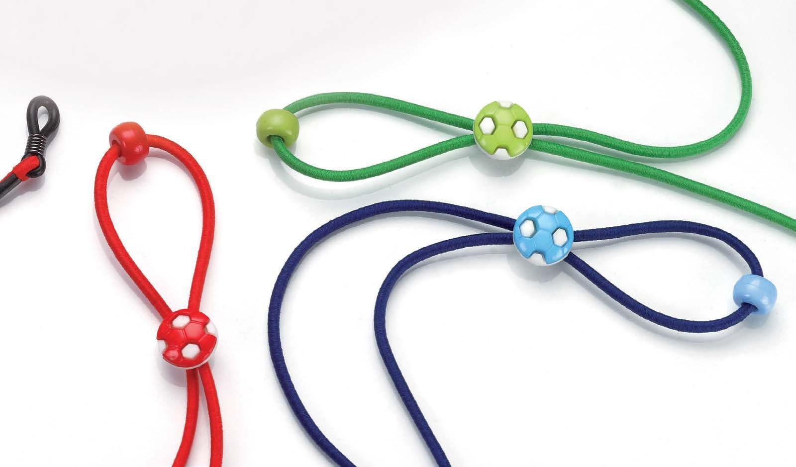 Colourful cotton spectacle cords for children. Each cord features a soft rubber sliding adjustor.