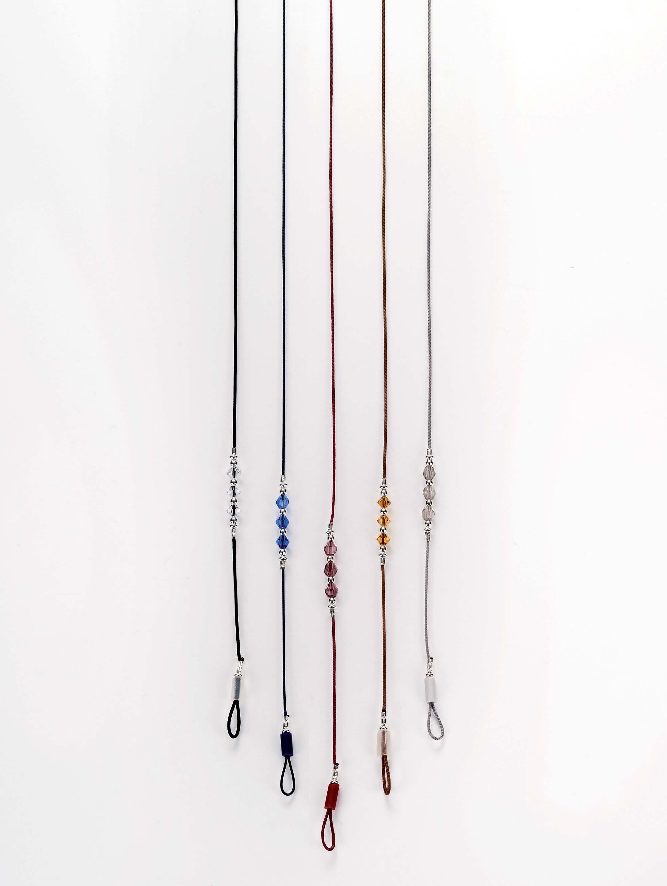 Adjustable spectacle holders made of hypoallergenic silicone. These cords feature a sliding length adjuster which helps to maintain the correct optical centre.