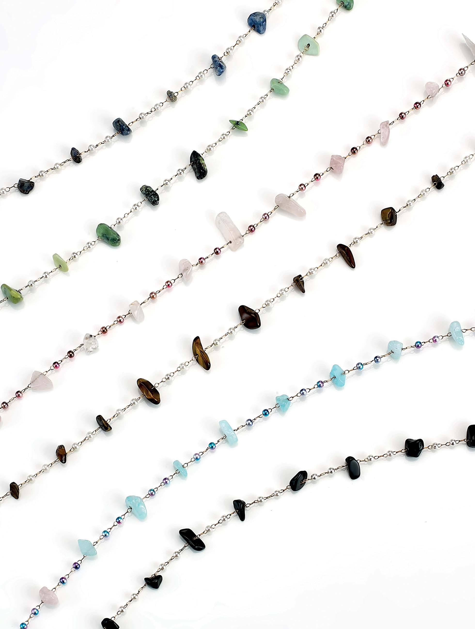 Ultra-light and resistant metal chains made of hypoallergenic material. Supplied with transparent sachets for individual packaging. Sold as assorted 12pc set with display tray