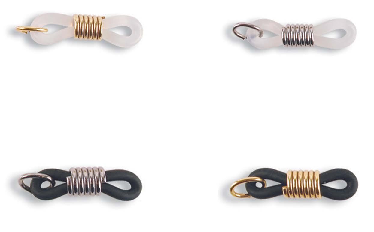 Silicone loop ends for optical chains. Available in black or clear silicone with gold or silver fixture.