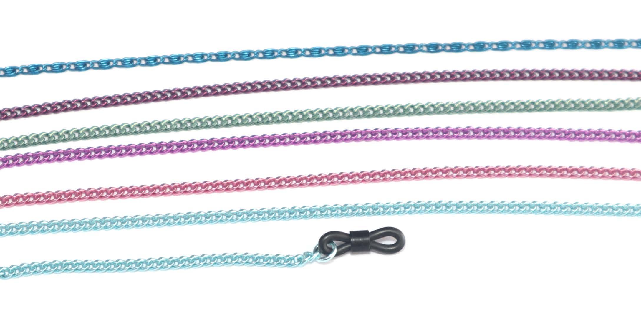 Cotton spectacle cords in vibrant colours with gun metal finishes.