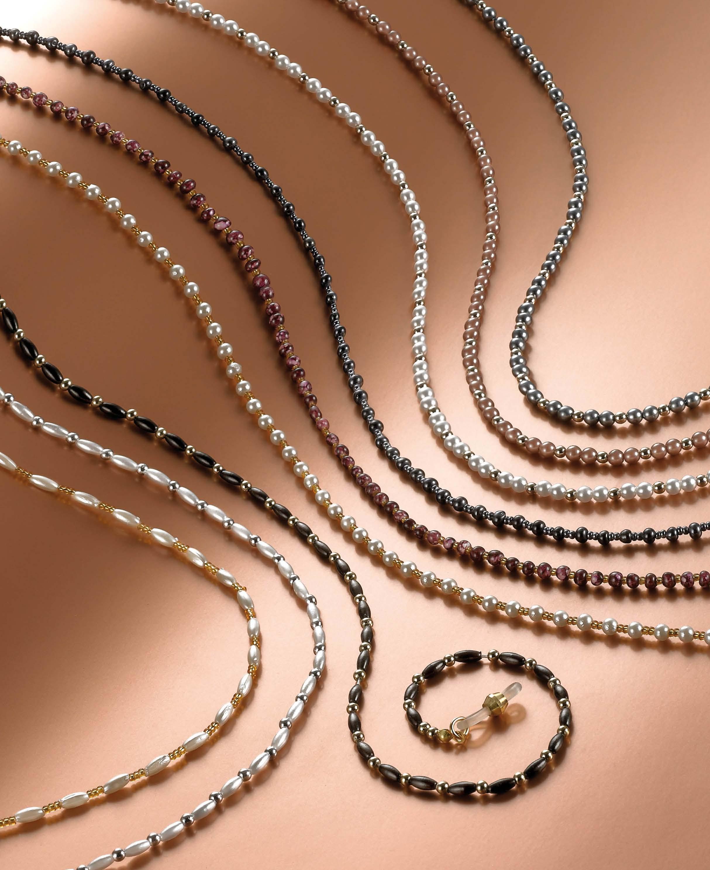 All chain sets featured in from the Chades collection offer a unique spin on the traditional spectacle cord design, incoporating materials such as glass and wood, as well as utilising a diverse range of colours and patterns.