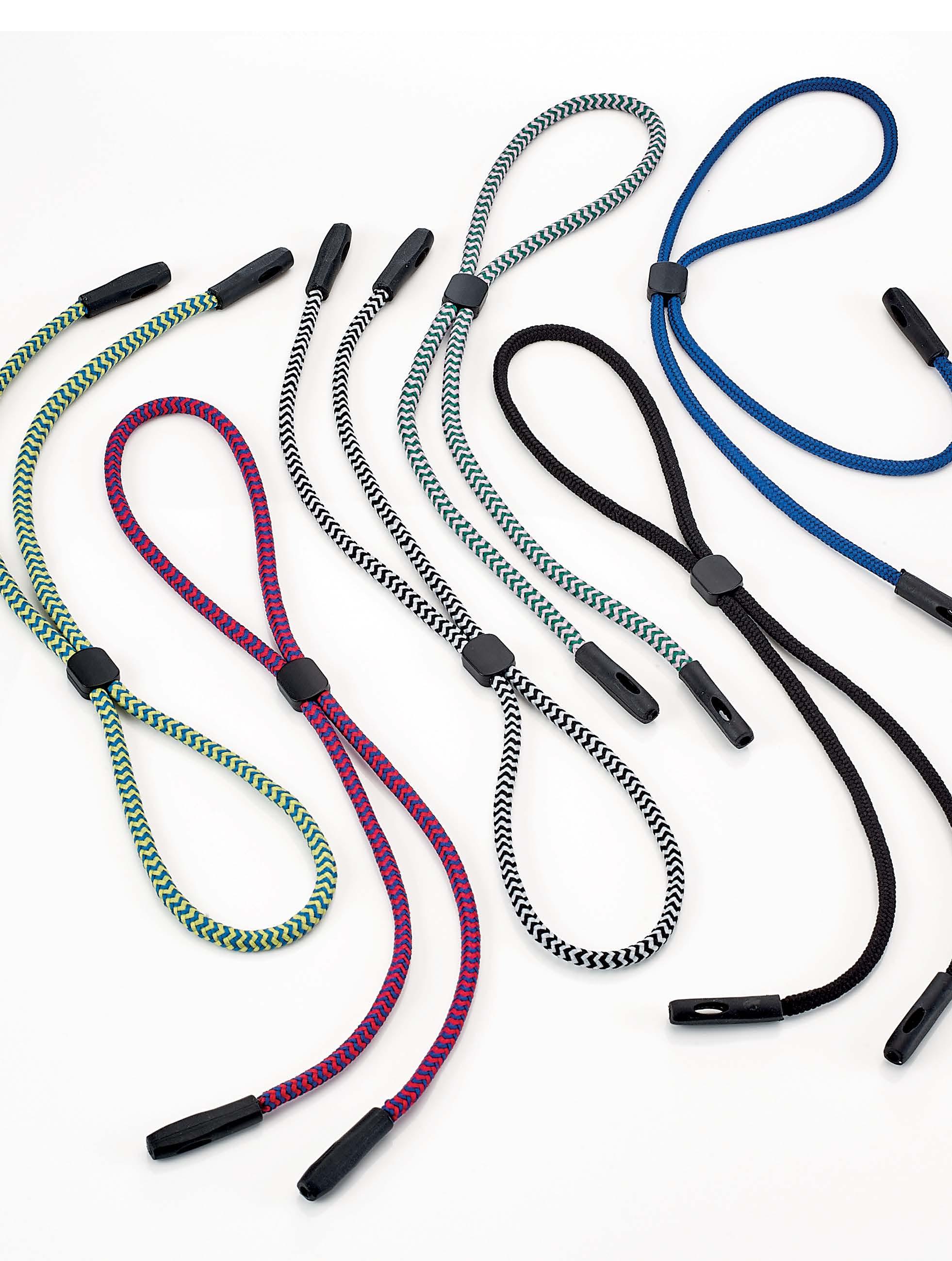 Adjustable spectacle holders made of hypoallergenic silicone. These cords feature a sliding length adjuster which helps to maintain the correct optical centre.
