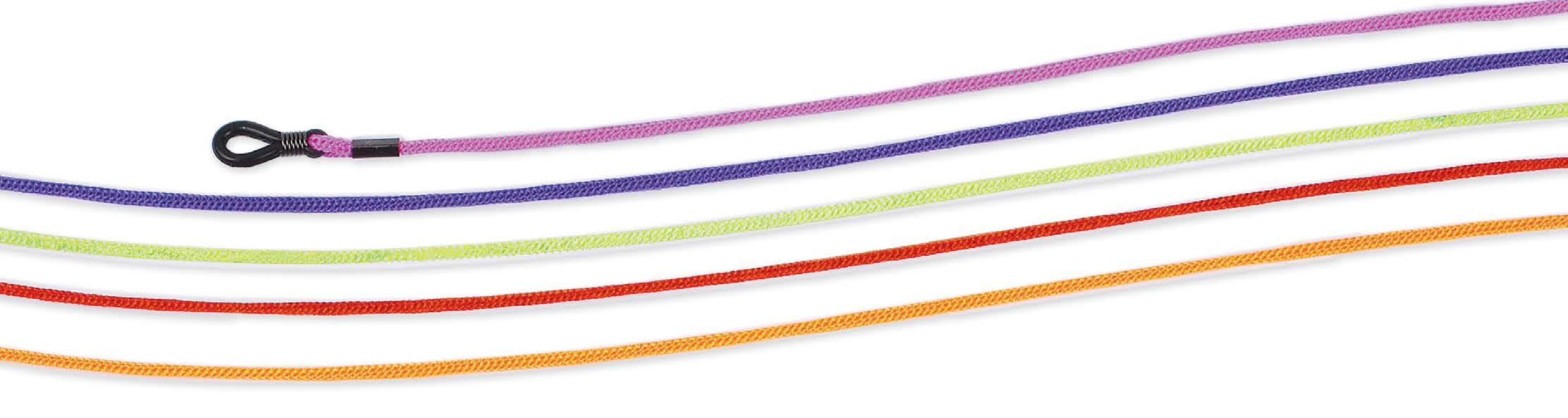 Adjustable cords, to maintain the correct optical centre. Ideal for sporting use, to hold your glasses securely. Individually packed in transparent bag. Sold as: 12pc assorted colours (74105), 12pc black (74106), 12pc blue (74107).