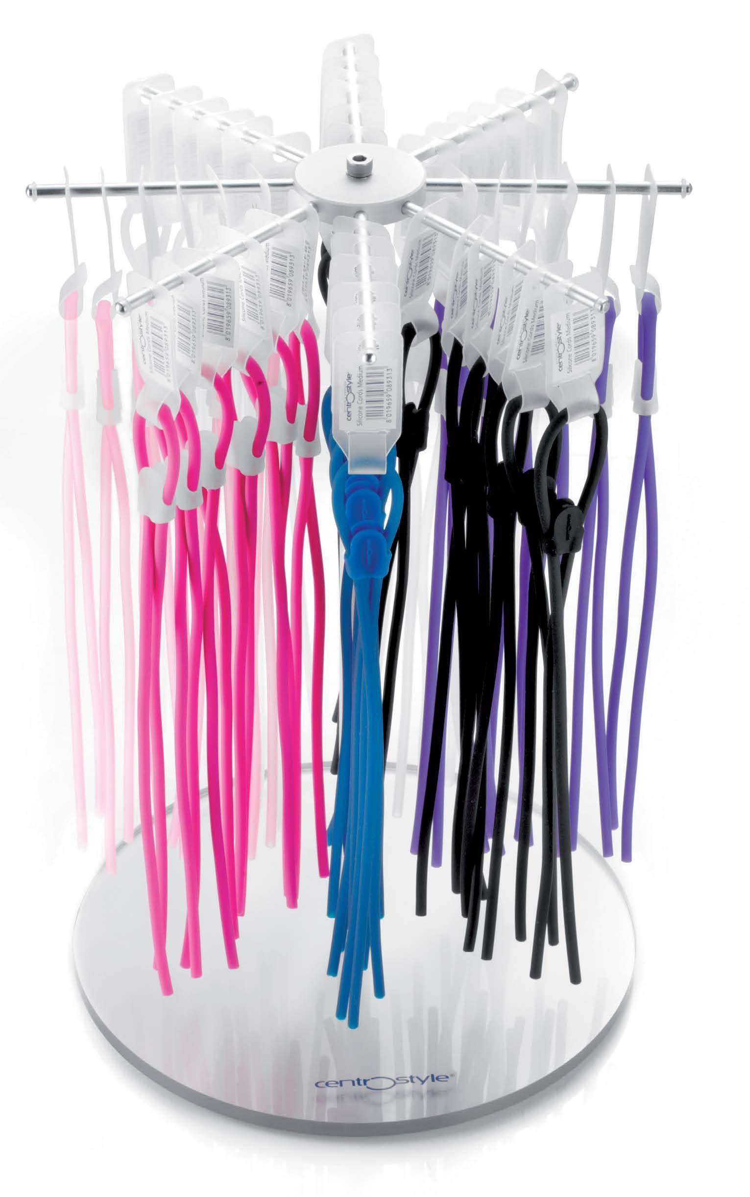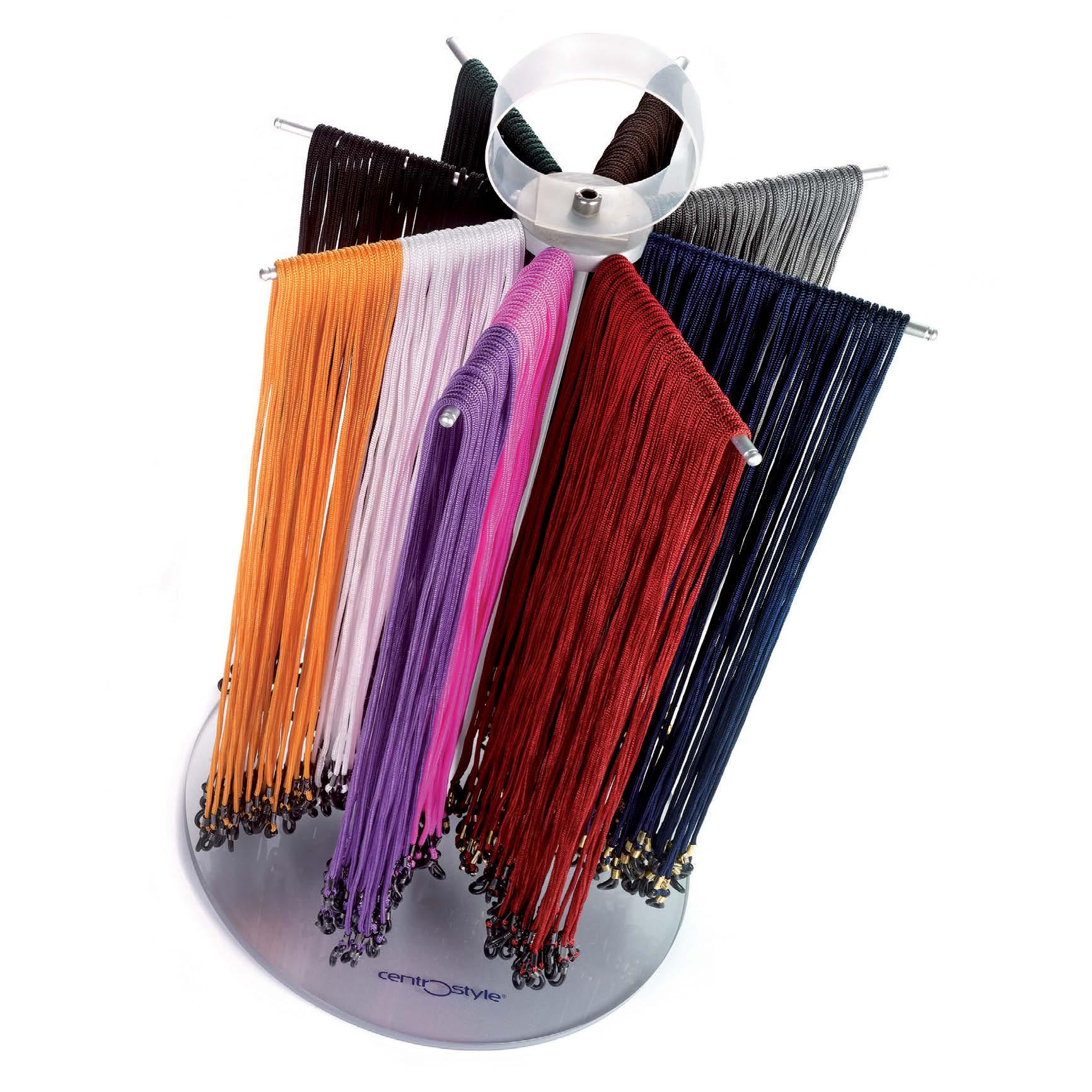 Features 8 arms which allow for displaying of cords with help of hang tags or by draping spectacle cords over the arms.