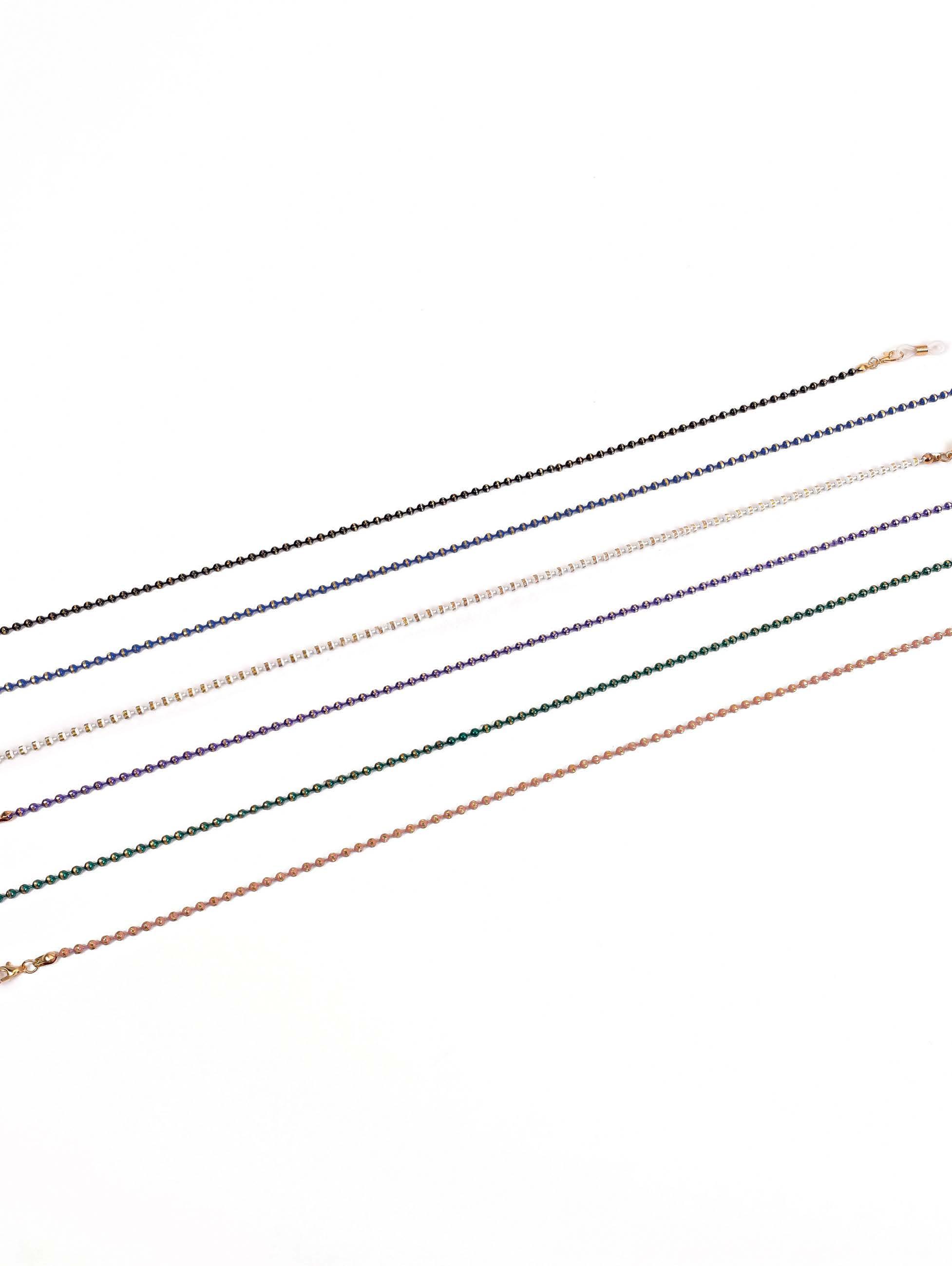 All chain sets featured in from the Chades collection offer a unique spin on the traditional spectacle cord design, incoporating materials such as glass and wood, as well as utilising a diverse range of colours and patterns.