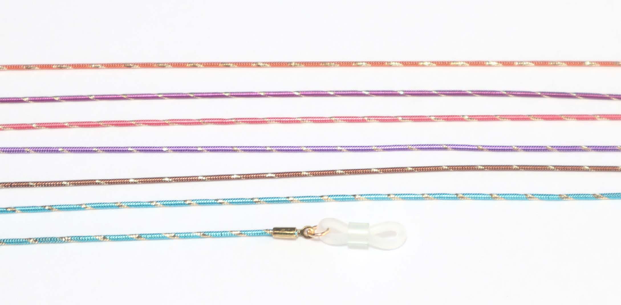 Cotton spectacle cords in assorted colours with gun metal finishes.