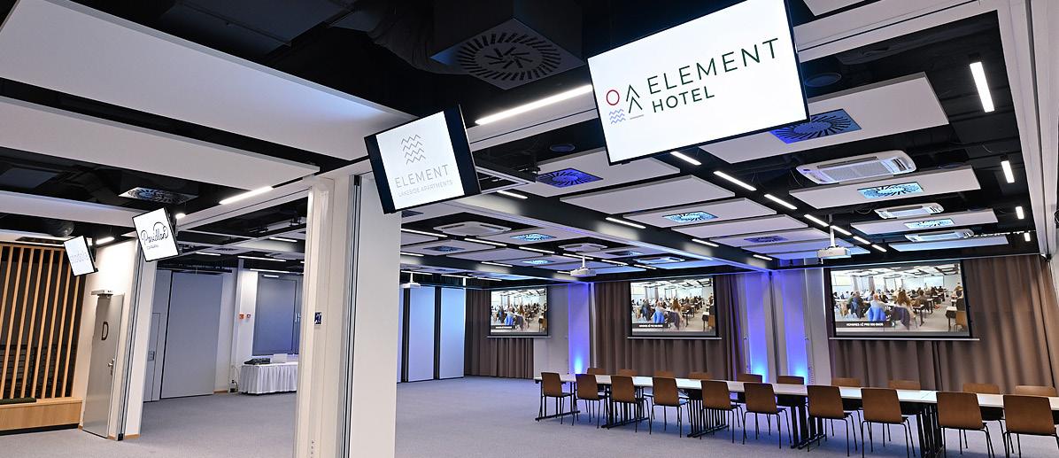 Hotel má kapacitu 96 pokojů, díky nimž lze ubytovat až 300 lidí najednou a uspořádat akce všeho druhu s kapacitou až 500 lidí, ať už se jedná o kongres, teambuilding, zaměstnaneckou konferenci, nebo koncert. Díky AV technice lze zabezpečit jakoukoli poptávku od klienta ve stoprocentní kvalitě. Během svého provozu hotel získal zkušenosti z akcí jako streamování po celém světě s vysokým požadavkem na internet nebo na specifické rozdělení sálu na menší salonky. Hotel Element nabízí mnoho služeb a aktivit a není nic, co by neuměli zařídit.