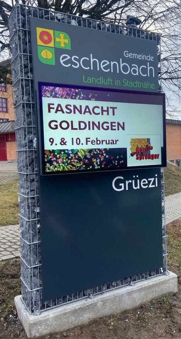 Eschenbach is a municipality in the constituency of See-Gaster in the canton of St. Gallen in Switzerland, serving several local villages. Since 2019, the municipal council have been researching and planning a means to communicate and share information to residents, tourists and people passing through. After Covid delays, the project finally started at the end of 2023, encompassing the installation of digital signage information boards that would serve as vibrant urban hubs for community engagement. The digital boards would be strategically situated in seven high traffic locations in and around the villages and their gateways to reach a broad audience with targeted messaging and acting as community hubs to inform visitors on local events and news.