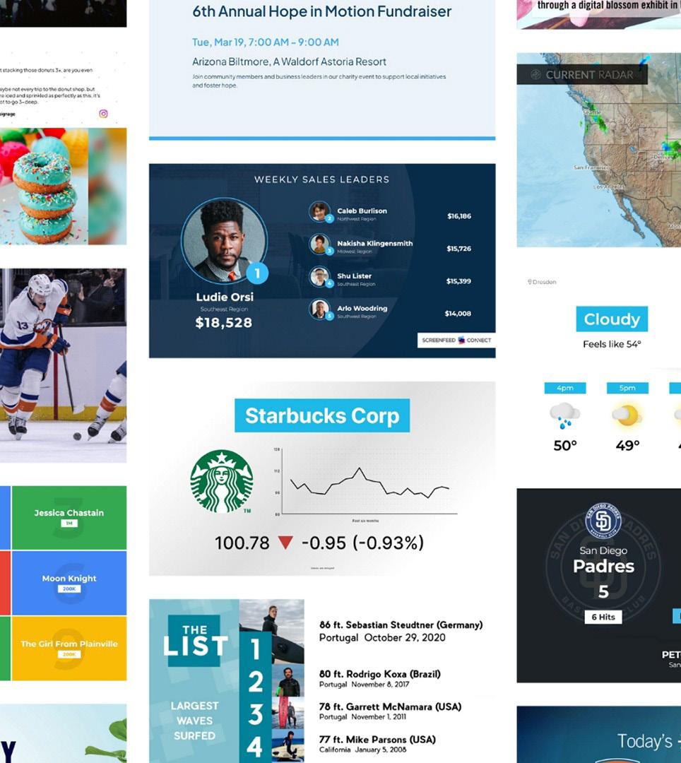 From within the Signagelive platform, any premium Screenfeed content purchased through Signagelive will be instantly available within an entirely unique and bespoke user interface exclusive to this integration. This spans multiple content categories - everything from live infotainment and social media to customer-designed, data-driven creations via Screenfeed’s Connect tool. The integrated solution also maximises efficiency, reducing content management workload. For example, settings can be altered from within Signagelive, saving customers the trouble of opening and navigating a secondary platform. Furthermore, updates to Screenfeed content are automatically reflected on Signagelive players, without the need for republishing.