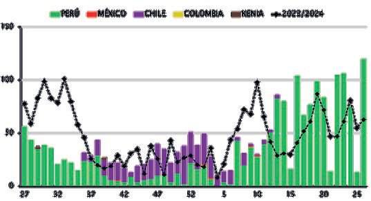 “We’ve seen that during mid-season—shipments arriving from midMay through late July (arrivals in June through early August)—plantings must be controlled, because there isn’t much more room for growth at this moment. Maybe in a few years, yes, but not right now. On the contrary, it’s better to extend the season. For example, this year Peru kept exporting into September, something that didn’t happen before. And don’t be surprised if, in the coming years, exports continue until mid-October. Proof it can be done: in week 38 alone, over 500 containers left Peru.”