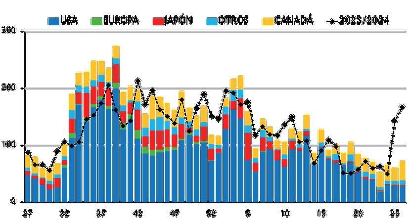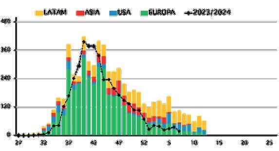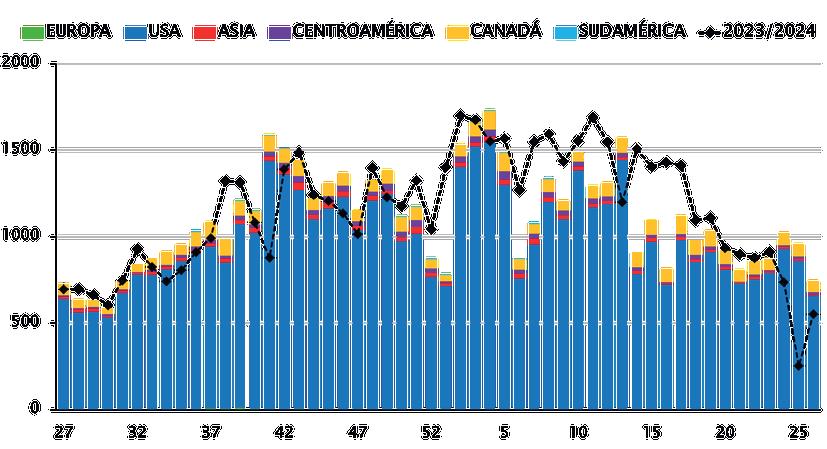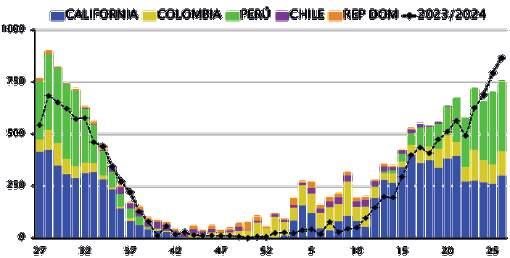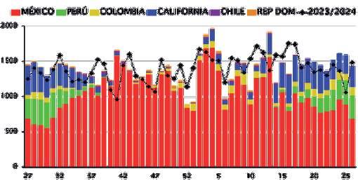 EMBARQUES SEMANALES DE AGUACATE HASS 2024/25