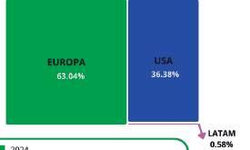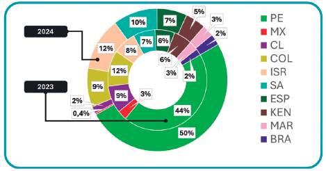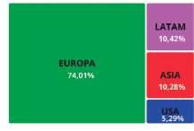 “Del total de producción exportada, Europa representa alrededor del 74%. Le sigue Latinoamérica (principalmente Argentina) con un 11%; Asia, con 10%; y Estados Unidos, con 5%. Aunque podría resultar interesante explorar otros mercados, como India, al tratarse del país más poblado del mundo, se deben despejar desafíos logísticos. Los tiempos de tránsito actuales desde Chile son de 55 días. En ese sentido, por el momento, no prevemos cambios significativos en los principales mercados de exportación”.