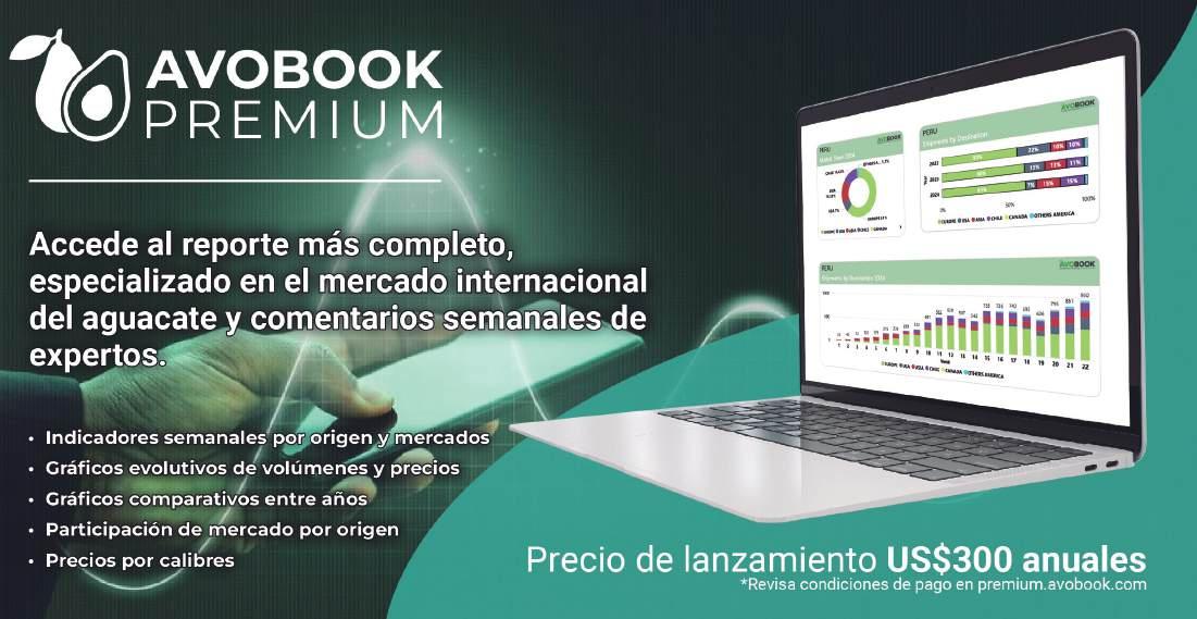 datos. Nuestros productos, Reportes Preview y Avobook Premium, proporcionan datos actualizados semanalmente. Por otra parte, Avonews, nos ofrece información actualizada, entrevistas con los principales actores del negocio y noticias relevantes del mundo del aguacate.