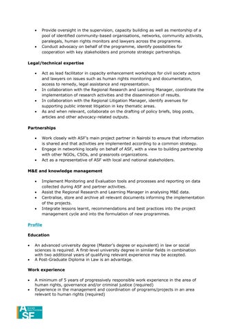 Knowledge of current human rights issues in Kenya is required. Knowledge of issues specific to Isiolo and Mombasa counties is an added advantage.