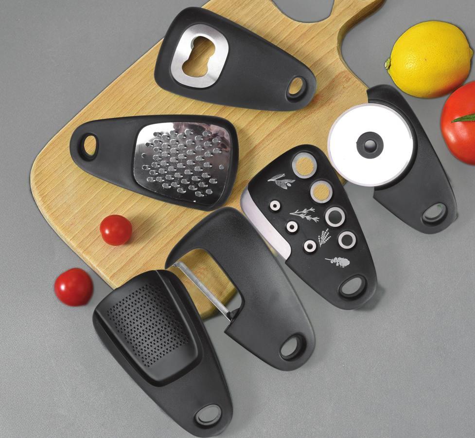 Cortadores Multifuncionales Acero Inoxidable, mango de PP Tamaño: 12.9 X 7.1 X 4.8 cms Precio Regular: ¢9.995 ¢7.995